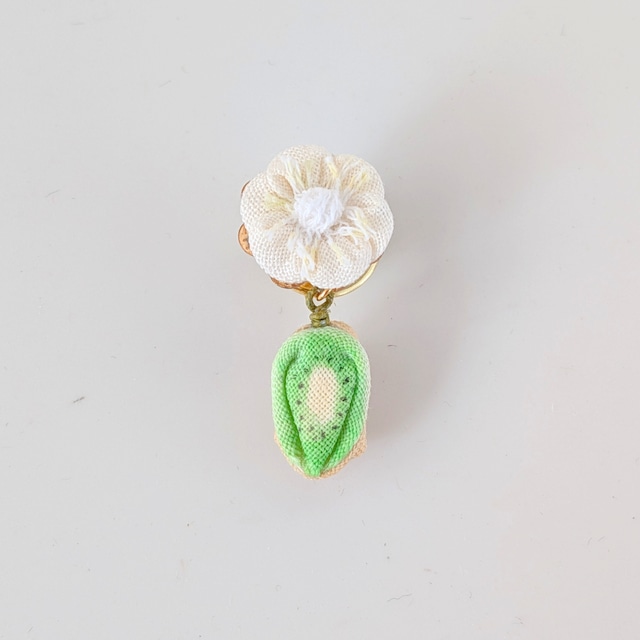 【この作品について】 岐阜県関市・洞戸(ほらど)地区の特産品”ほらどキウイ”をモチーフにした、つまみ細工のピンバッジです。 「地元農産物の魅力をもっと広めたい」という思いから制作しました、 ほらどキウイの名前・ロゴ使用許可をいただきました、JAめぐみのさまありがとうございます。 清流・板取川のめぐみと、山あいの寒暖差に育まれた”ほらどキウイ”は、岐阜県関市・洞戸地区の名産品。 甘みと酸味のバランスが良く、ジューシーな果肉と、口の中ではじけるようなプチプチ食感が魅力的なキウイフルーツです。 1979年から生産が始まり、今では「ほらどキウイを未来につなごうプロジェクト(通称:ほらプロ)」が発足するなど、地域ぐるみでその魅力を次世代に伝える取り組みが進められています。 マタタビ科であるキウイは雌雄異株で、雄しべが退化して突出した子房を持つ雌花と、雄しべがふさふさしている雄花がそれぞれ別の木に咲きます。 とても甘い香りを漂わせるやさしいキウイフルーツの花言葉は、「生命力」「豊富」。 たくさんの花を咲かせ、たくさんの実をつける、その生命力あふれる力を日々の装いに。 この作品は、そんな「ほらどキウイ」の実・葉・花の姿を、つまみ細工の技法で表現したものです。 日本の伝統工芸であるつまみ細工は、江戸時代から伝わる技術で、小さな布片を一枚一枚折り畳み、組み合わせることで花や自然のかたちを表現しています。 自然の息吹をハンドメイドアクセサリーで感じていただけます。 身につけるたびに「これ、キウイの花なんだよ」と誰かに話したくなる。 そんな小さな会話が、農や食への入口になればと思っています。 装いのワンポイントにはもちろん、ふるさとへの想いを身につけるような、心に残る小さな記念品としてもおすすめです。 大切な方への贈り物にもぴったりな、優しいラッピングでお届けします。 農業×伝統工芸の振興を!小さなつまみ細工を身に着けて、ほらどキウイを応援しよう! 【使用素材】 ほらどキウイのピンバッジで使用している素材は以下の通りです。 ・コットン100%生地 ・木工用ボンド(接着) ・ワイヤー ・金具:ピンバッジ(バタフライクラッチ) 【大きさ】 ほらどキウイのピンバッジの大きさは、以下の通りです。 ・サイズ:ピンバッジ全長3.0cm・お花約1.5cm・実約1.5cm ・重さ:約2.8g 【発送について】 こびとの農園での発送について、以下の通りです。 ・送料込みのお値段でご案内しております。 ・ご注文から発送まで最大7日間お時間をいただいております。 お急ぎ対応が難しいため、余裕を持ったご注文をお願いいたします。 ・追跡可能な匿名配送で安心・丁寧にお届けします。 【返品・交換をお受けできない場合】 以下の条件に該当する場合、返品・交換をお受けできません。 (※初期不良を除く) ・イメージ違いによる返品・交換 ・お届けから7日以上経過した商品 ・使用済み・汚損・破損した商品 ・洗濯、修理、クリーニングされた商品 ・付属のタグやパッケージを破損・紛失・処分された商品 ・返品目的の大量購入 ・他商品との交換希望 ・商品ページに返品不可と明記されたもの 【注意事項】 ・本作品は一点ずつ手作りしています。写真と完全に同一の仕上がりを保証するものでは無いことご了承ください。 ・できる限り実物の色味に近づけて撮影しておりますが、モニターや撮影環境により実際の色味と多少異なる場合があります。 ・作品や商品ページに関する画像・文章・デザインの無断使用・模倣・転載はご遠慮ください。 ・ご購入いただいた作品は、今後「こびとの農園」の広報・SNS等にて紹介させていただく場合がございます。