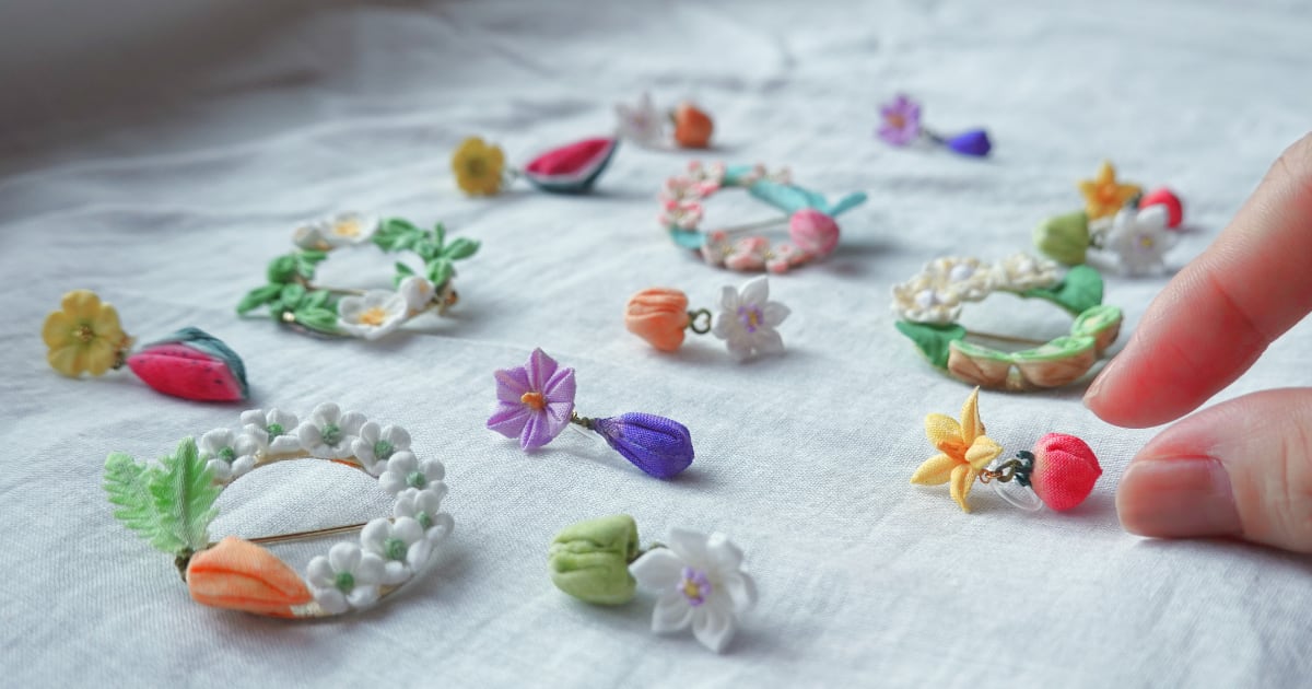こびとの農園は、花鳥風月を映す日本の伝統工芸「つまみ細工」で、見過ごされがちな“農作物の花”の魅力を伝え、農と人との距離をそっと近づける活動を行っています。