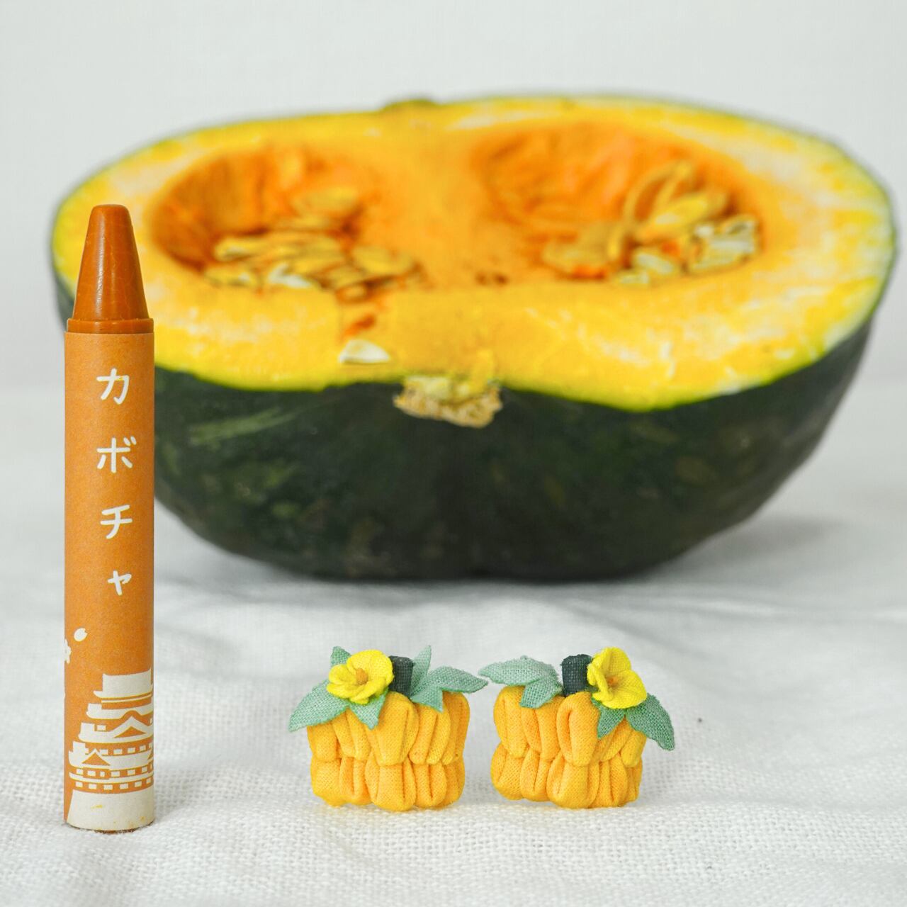 つまみ細工「カボチャ(ペポカボチャ)のピアス・イヤリング」~にしみのおやさいクレヨン~