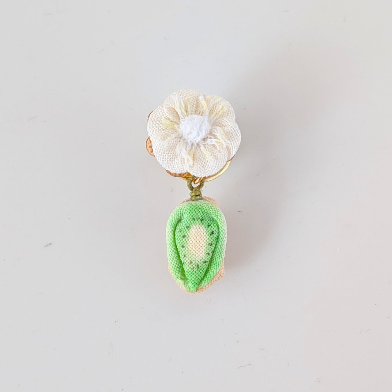 岐阜県関市・洞戸(ほらど)地区の特産品”ほらどキウイ”をモチーフにした、つまみ細工のピンバッジです。