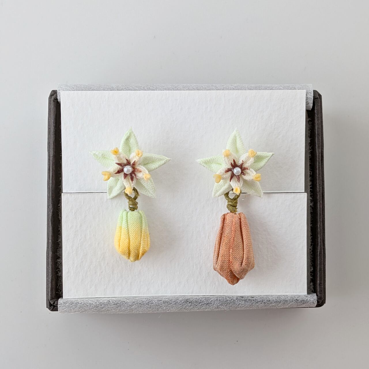 つまみ細工「カカオのピアス・イヤリング」